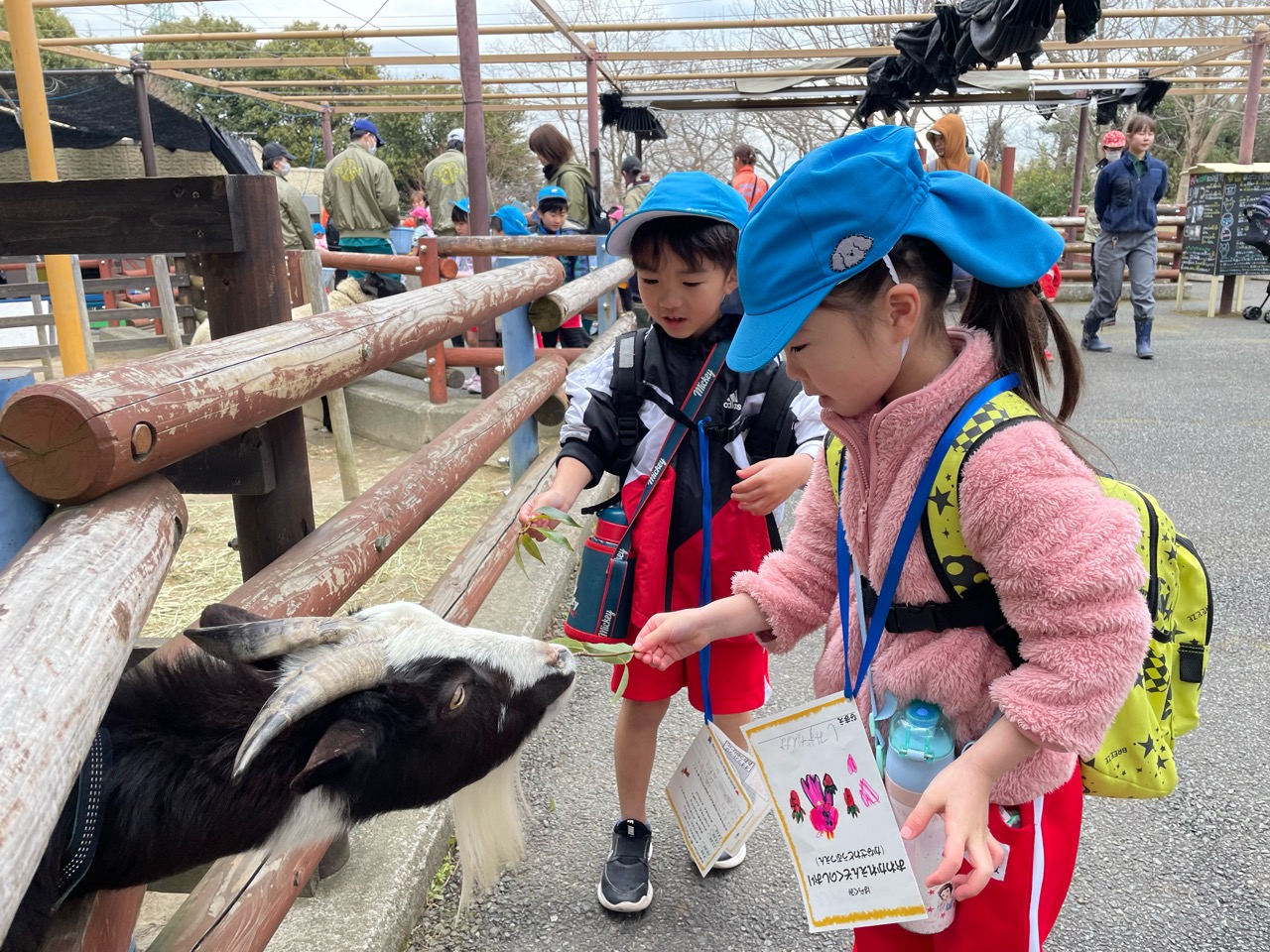 到着すると、「あっちにいるよ!」「次はどこに行く?」と、友だち同士で声を掛け合いながら、スタンプラリーを手に園内を回りました🦒