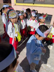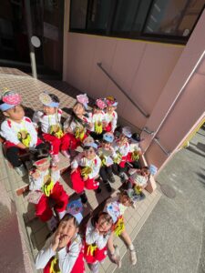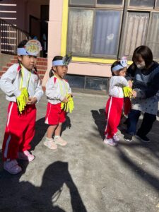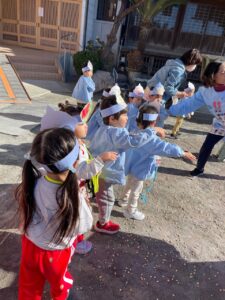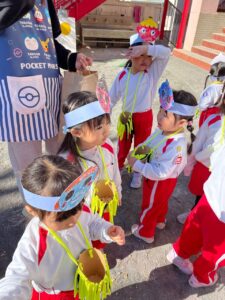 怖がりながらも豆を投げる子ども達‼️